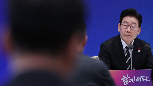 ▲ 이재명 대통령이 21일 청와대 영빈관에서 열린 신년기자회견에서 취재 기자의 질문을 듣고 있다.
