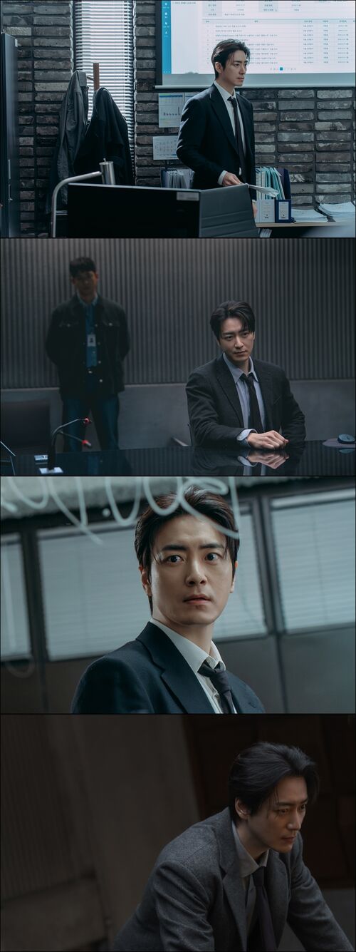 '무경'은 서울경찰청 강력범죄수사대 소속 경감으로, 청담동 명품 거리 한복판에서 얼굴이 처참하게 뭉개진 채 얼어 죽은 '사라킴'의 사건을 맡게 된 인물. 사건 종결 보고서와 진술 조서가 띄워져 있는 화면 앞, 결의에 찬 표정으로 서 있는 '무경'의 모습은 '사라킴' 사건 뒤에 숨겨진 진실을 쫓는 그의 집요함을 단번에 느껴지게 만든다.