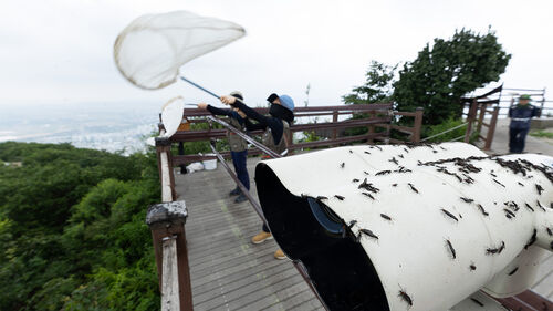 ▲ 환경부 직원들, 인천 계양산 러브버그 방제 작업