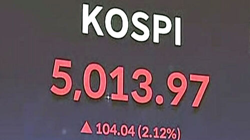 코스피가 장중 한때 꿈의 지수로 불리던 5천 포인트를 돌파했습니다. 지난해 4천 포인트를 넘긴 지 불과 석 달 만입니다.