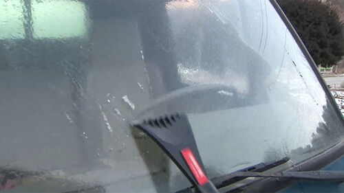 주차돼 있던 차량 앞유리에 이렇게 물을 끼얹어버리면 바로 얼어버립니다.