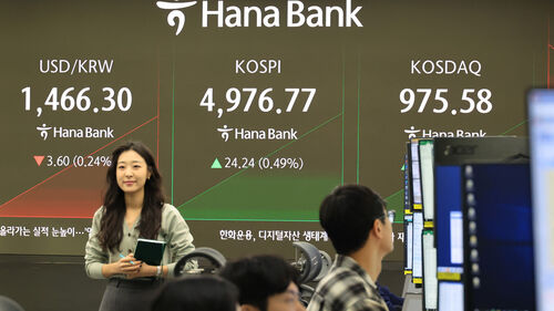▲ 23일 서울 중구 하나은행 본점에서 직원들이 증시와 환율을 모니터하고 있다.