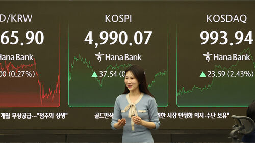 이날 코스피는 전장보다 37.54포인트(0.76%) 오른 4,990.07에 장을 마치며 전날 기록한 종가 기준 최고치를 재차 경신했습니다.