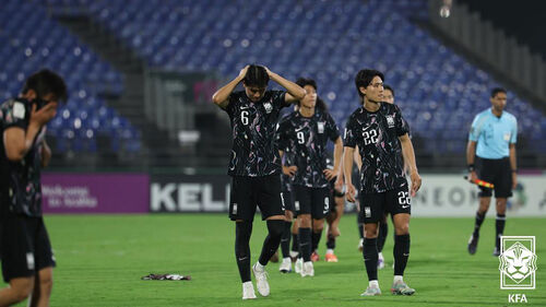 ▲ 패배에 아쉬워하는 한국 선수들