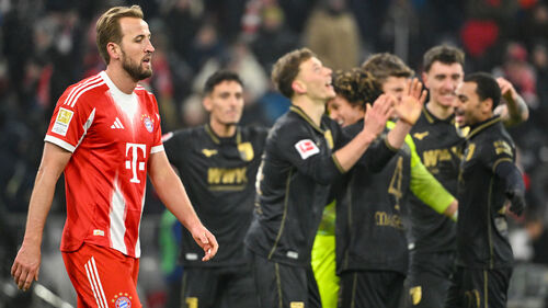 ▲ 아우크스부르크 선수들이 환호하는 가운데 바이에른 뮌헨의 해리 케인이 걸어가고 있다.