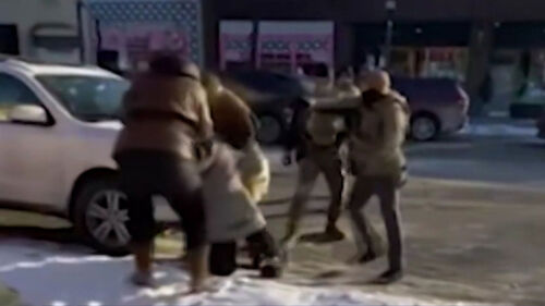 [목격자 : 그 사람은 걷고 있었는데 갑자기 요원이 어디선가 나타나서는 그 사람을 덮치고 몸싸움을 시작했어요. 그냥 걷는데 에워쌌습니다.]