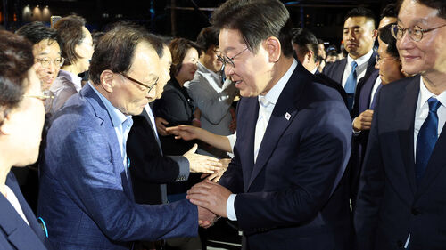 ▲ 지난해 8월 서울 광화문광장에서 열린 제21대 대통령 국민임명식에서 이재명 대통령과 악수하는 이해찬 전 총리 모습.
