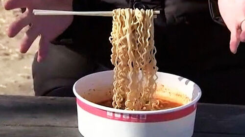 기자는 '라면이 조형물처럼 변했다', '젓가락이 공중에 멈춘 것 같다'며 놀라워했고, 얼어붙은 라면을 직접 씹어 먹으며 '가루 맛밖에 나지 않는다'고 소감을 전하기도 했습니다.
