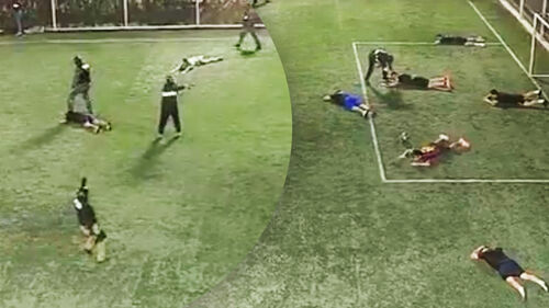 공개된 CCTV 영상에는 괴한들이 경기장으로 들어와 특정 인물들을 향해 총구를 겨누고 직접 총을 발사하는 장면과 다른 선수들이 공포에 질려 잔디 위에 엎드리는 모습이 고스란히 담겼습니다.