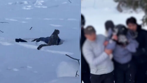 중국에서 스키를 타던 한 관광객이 희귀 동물의 공격으로 크게 다쳤습니다.