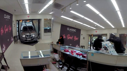 미국 캘리포니아주의 한 보석상으로 갑자기 SUV 차량 한 대가 돌진합니다.