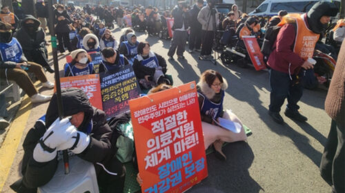 장애인단체 등으로 구성된 '인천 중증장애인거주시설 성폭력사건 공동대책위원회'(이하 대책위)는 27일 오후 서울 종로구 청와대 사랑채 앞에서 '장애인 거주시설 인권 참사 해결 촉구 결의대회'를 열었습니다.