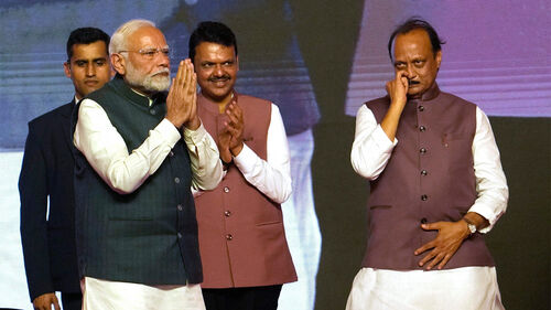 ▲ 나렌드라 모디 인도 총리(왼쪽)와 아지트 파와르 마하라슈트라주 부총리(맨 오른쪽)