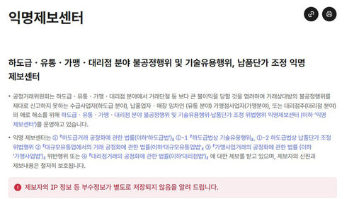 공정위 웹사이트의 익명 제보센터에 제보하면 신고자 인터넷 프로토콜(IP) 주소도 남지 않습니다.