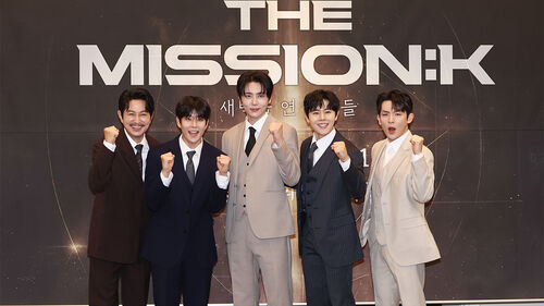 ▲ 지난 5일 서울 중구 프레스센터에서 열린 뮤지컬 콘서트 '더 미션:K' 기자간담회에서 뮤지컬 배우 서범석(왼쪽부터), MJ, 재윤, 김동준, 리키가 포즈를 취하고 있다.