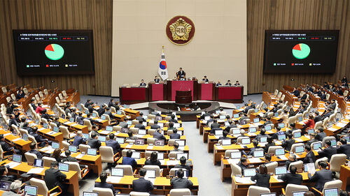 ▲ 29일 국회에서 열린 제431회 국회(임시회) 제2차 본회의에서 국회법 일부개정법률안이 가결되고 있다