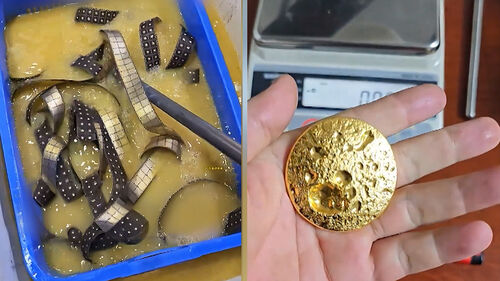 연일 금값이 고공행진을 이어가는 가운데 휴대전화 칩에서 금을 뽑아냈다는 영상이 화제를 모으고 있습니다.