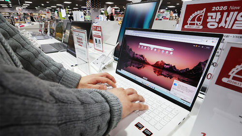 ▲ 서울의 한 마트에서 관계자가 노트북을 살펴보고 있다.