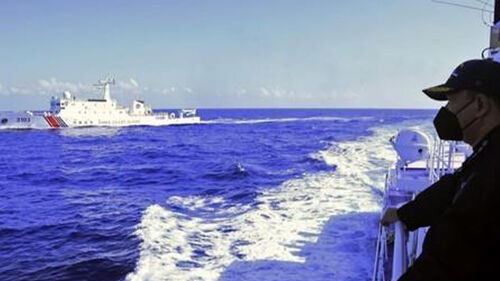 ▲ 중국 해양 경비정을 바라보는 필리핀 해양경비대원