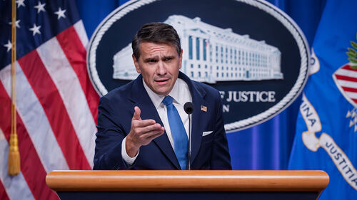 ▲ 엡스타인 파일 추가 공개 기자회견하는 토드 블랜치 미 법무부 부장관