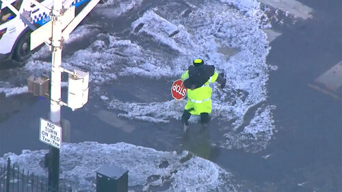 미국 시카고의 한 공립학교 횡단 보도 안전요원이 물과 얼음, 눈이 뒤섞여 엉망이 된 도로에서 학생을 도운 선행이 소셜미디어(SNS)에서 큰 화제를 모았습니다.