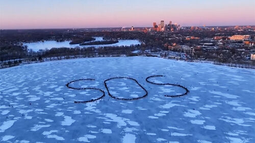 미네소타주에서는 영하 10도를 밑도는 강추위 속에 시위대가 꽁꽁 언 호수로 나왔습니다.
