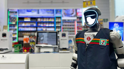 롯데이노베이트가 코리아세븐과 손잡고 서울 본사 1층에서 선보이는 AX 랩 3.0은 휴머노이드 로봇과 AI가 매장을 관리하고 고객을 응대합니다.