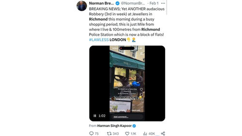 1일(현지시간) 영국 BBC와 텔레그래프에 따르면 전날 오전 10시 30분 런던 남서부 리치먼드 지역의 한 보석 가게를 도둑 두 명이 습격했습니다.