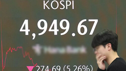 한때 4천930대까지 떨어진 코스피는 다시 반등하는 듯했으나 전장보다 5.26% 급락한 4천949.67로 거래를 마감했습니다.