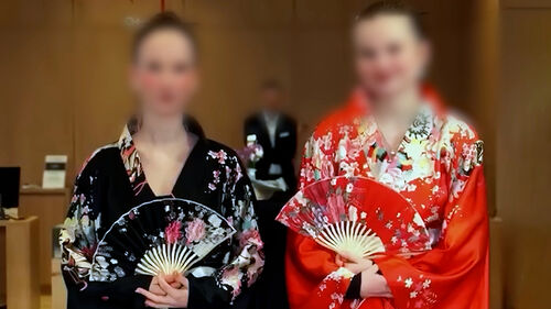 그런데 공개된 영상을 보면 일본 전통 의상인 기모노를 입은 여성들이 매장을 걸어 다니고 천장에는 중국풍 등불이 가득 걸려 있습니다.