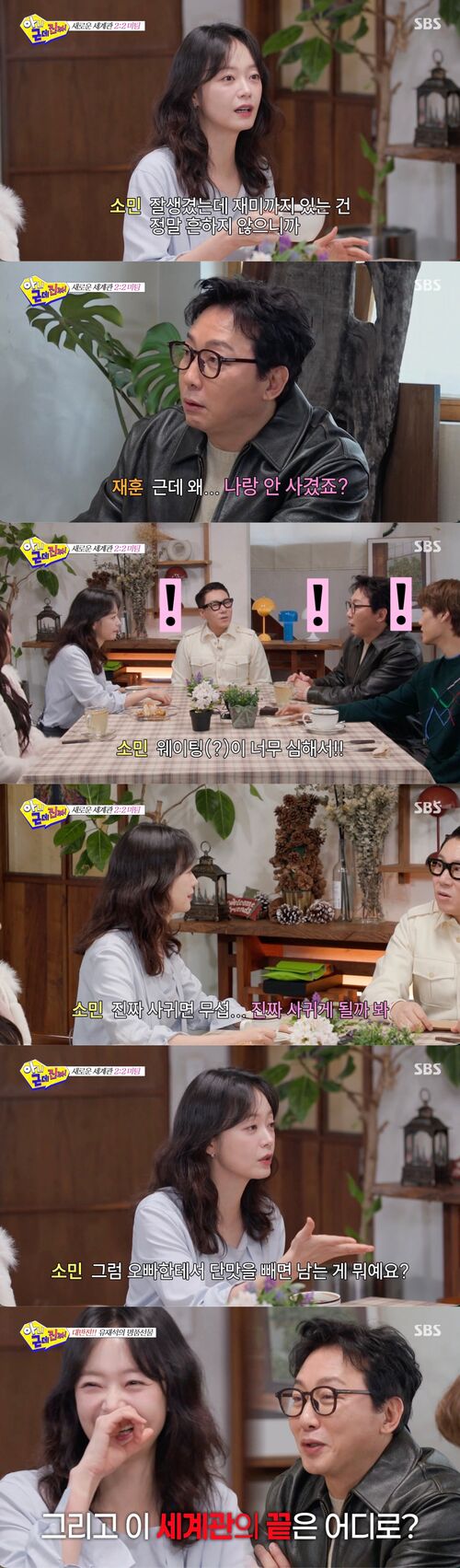 전소민과 대화를 나눈 탁재훈은 "가식 없어 보이고 너무 좋다"라며 "실제 상황이 일어나면 감당이 되겠냐?"라고 자신과 진짜 연애가 가능한지 물었다.