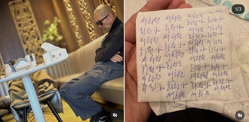 그 사진에는 구준엽이 작은 휴지에 볼펜으로 가득 '서희원', '희원아'를 적은 글씨가 있었다.