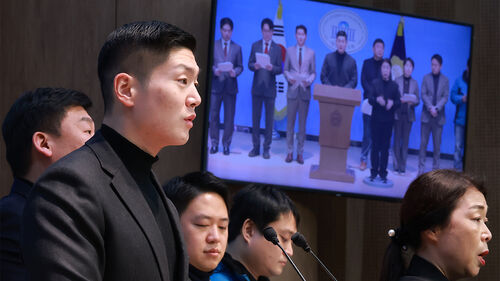 ▲ 국민의힘 주거사다리정상화특별위원회 위원장인 김재섭 의원이 지난달 6일 국회 소통관에서 재개발·재건축 정비사업 활성화 대책과 관련해 기자회견하고 있다.