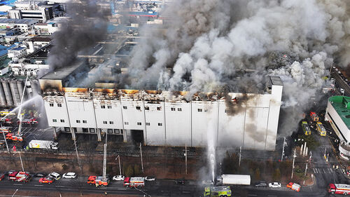 ▲ 지난 3일 오후 경기 시흥시 정왕동 SPC삼립 시화공장에서 화재가 발생해 소방관들이 진화 작업을 하고 있다.