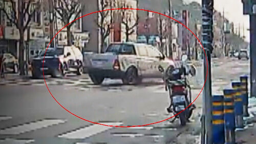 속도가 점점 붙더니, 중앙선을 넘어 상가 건물로 돌진합니다.
