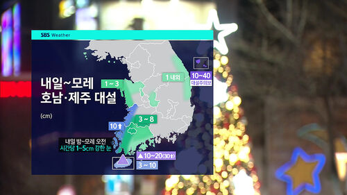 특히 내일 밤부터 모레 오전 사이 강한 눈이 집중되면서 제주 산지에 최고 30cm 이상, 호남 서해안에도 많게는 10cm 이상이 쏟아지겠고요.