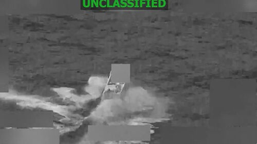 ▲ 미국 남부사령부가 동태평양에서 마약 운반 의심 선박을 타격하기 직전의 모습