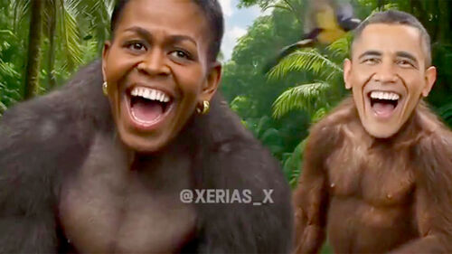 그런데 1분짜리 영상의 말미에는 오바마 전 대통령과 부인인 미셸 여사의 얼굴에 원숭이의 몸을 합성한 장면이 등장합니다.
