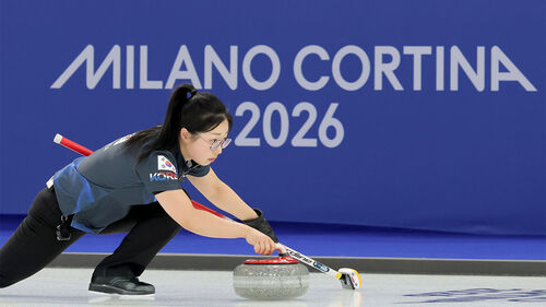 ▲ 컬링 믹스더블 국가대표 김선영이 5일(현지시간) 이탈리아 코르티나담페초 컬링 올림픽 스타디움에서 열린 밀라노·코르티나 동계올림픽 이탈리아와의 라운드로빈 경기에서 투구를 하고 있다.