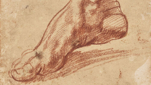 붉은 분필로 그려진 발 스케치는 미켈란젤로의 걸작으로 꼽히는 시스티나 성당 천장화를 위해 그린 습작 50점 중 하나입니다.