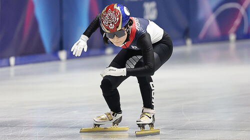 ▲ 2026 밀라노ㆍ코르티나담페초 동계올림픽 쇼트트랙에 출전하는 김길리가 8일(현지시간) 이탈리아 밀라노 아이스스케이팅 아레나에서 스타트 훈련을 하고 있다.