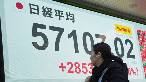▲ 9일 장 중 한때 57,000선을 넘어선 닛케이지수