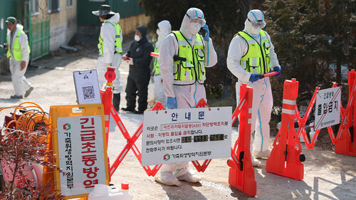 ▲ 2월 4일 경남 창녕군 대합면 아프리카돼지열병(ASF)이 발생한 돼지 사육 농가 주변에서 방역 당국이 현장을 통제하고 있다.