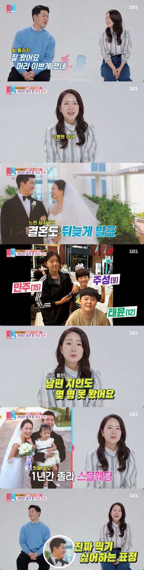 결혼 16년 차인 두 사람. 김병현은 결혼도 늦게 발표하고 SNS에도 아내의 흔적이 없는 것에 대해 "숨긴 건 아니고 각자의 삶을 살고 있어서 공개하지 않았다"라고 해명했다.