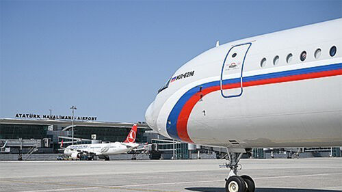▲ 일류신 Il-62M 기종이 지난해 7월 우크라이나 회담에 앞서 러시아 대표단을 태우고 튀르키예에 착륙한 모습