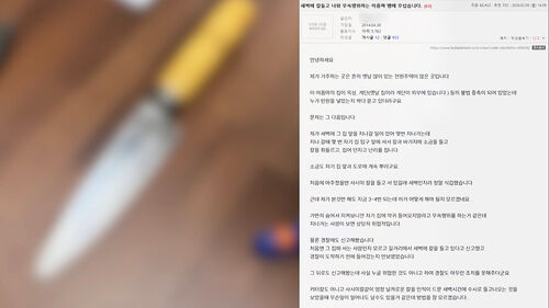네, 최근 온라인 커뮤니티에 "새벽에 흉기를 들고 나오는 이웃 때문에 무섭다"는 사연이 올라왔습니다.