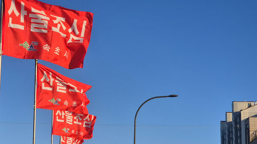 ▲ 건조한 날씨 속 산불 위험이 높아지고 있는 9일 강원 속초시 조양동에서 산불 조심 깃발이 바람에 펄럭이고 있다