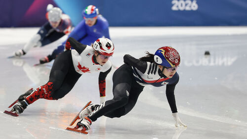 ▲ 14일(현지시간) 이탈리아 밀라노 아이스스케이팅 아레나에서 열린 2026 밀라노·코르티나담페초 동계올림픽 쇼트트랙 여자 1,000m 예선에 출전한 최민정이 질주하고 있다.