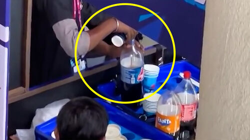 음료 판매 직원이 이미 컵에 담겼던 탄산음료를 다시 큰 병에 붓고 있는데요.