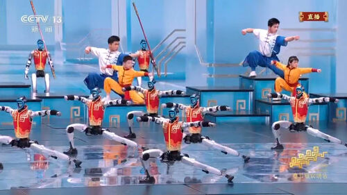 공연의 하이라이트는 '무봇' 제하의 공연으로, 유니트리 휴머노이드 로봇 수십여대가 지역 청소년들과 무술을 겨루는 내용으로 구성됐습니다.